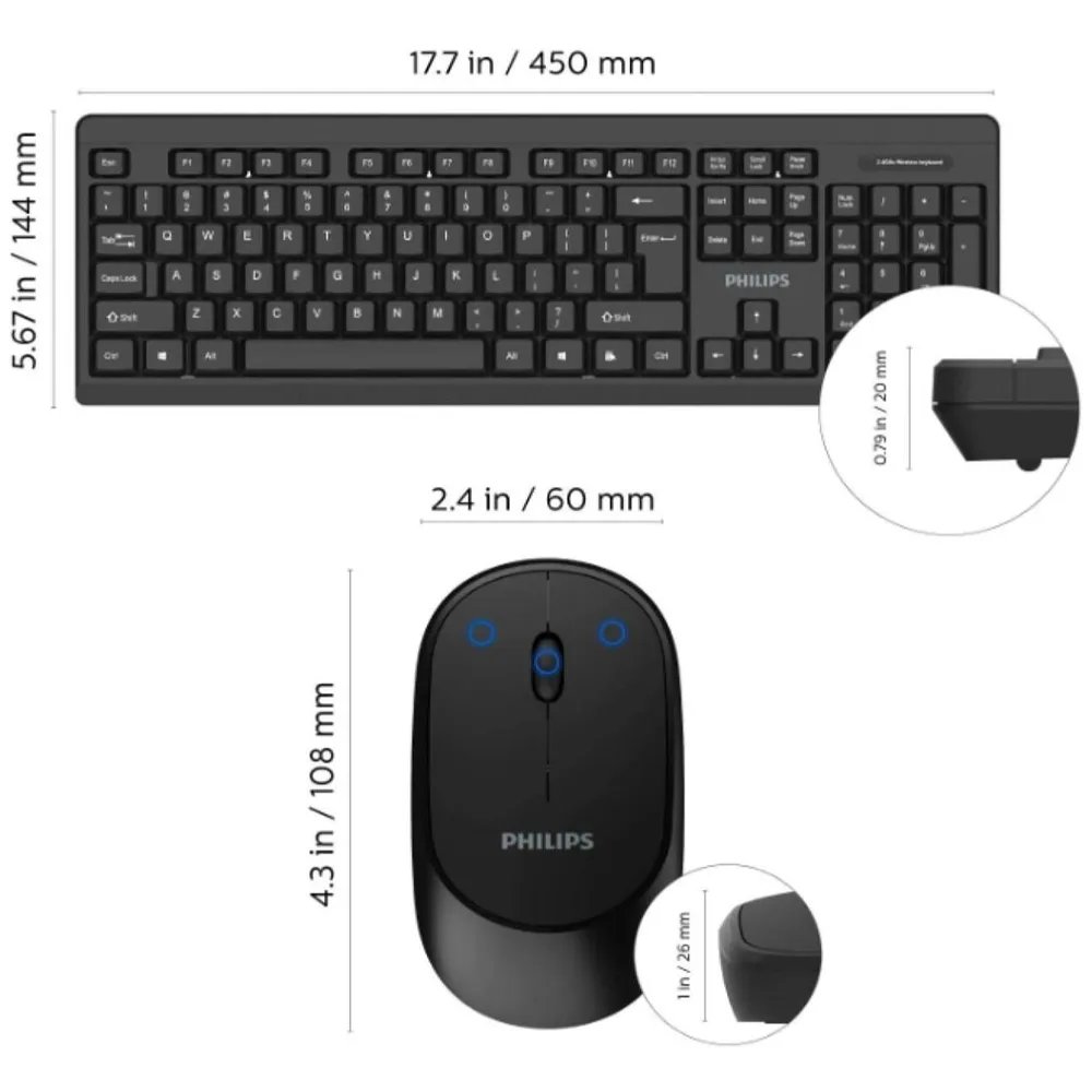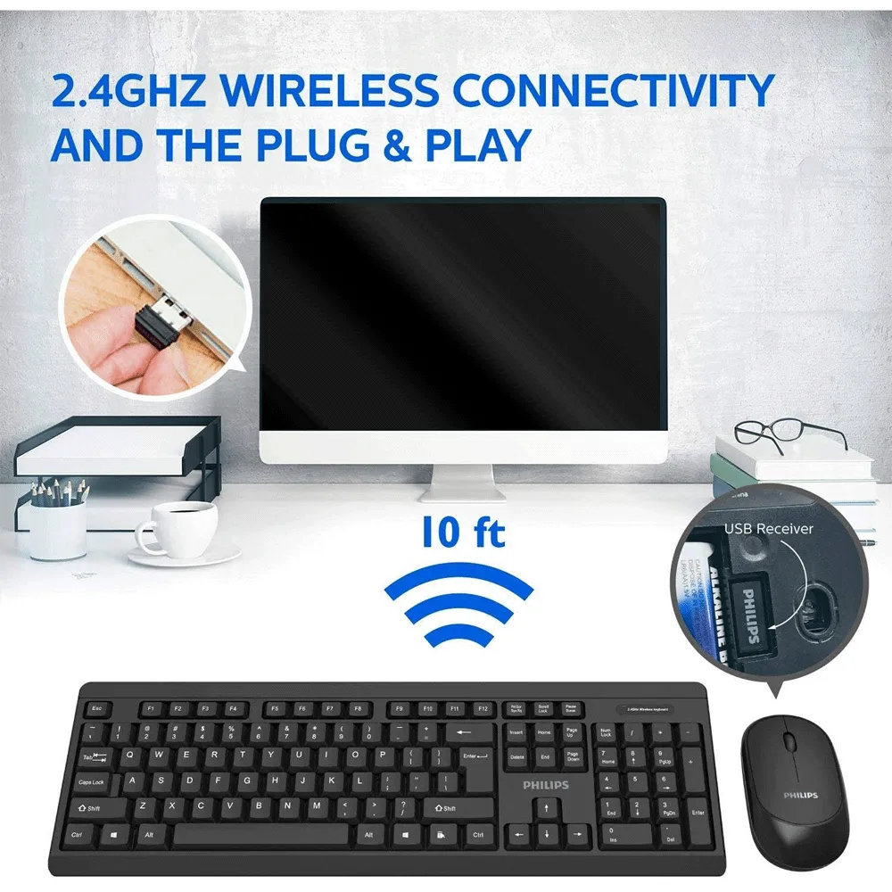 Combo Teclado Mouse Inalambrico Philips Modelo SPT6324 - 29PHL6324B
