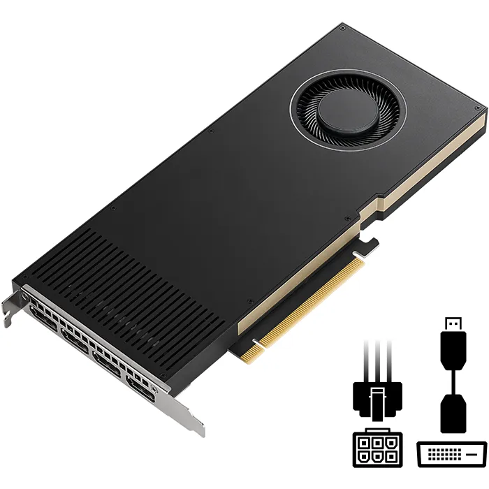 NVIDIA RTX A 4000 es la GPU de una sola ranura más potente para profesionales, que ofrece trazado de rayos en tiempo real, cómputo acelerado por IA y rendimiento de gráficos de alto rendimiento para su escritorio. Basado en la arquitectura NVIDIA Ampere, el RTX A 4000 combina 48 núcleos RT de segunda generación, 192 núcleos Tensor de tercera generación y 6144 núcleos CUDA con 16 GB de memoria gráfica. Para que pueda diseñar productos de próxima generación, diseñar paisajes urbanos del futuro y crear experiencias de entretenimiento inmersivas del mañana, hoy, desde su estación de trabajo de escritorio. Y con un factor de forma PCIe de una sola ranura de bajo consumo que se adapta a una amplia gama de chasis de estaciones de trabajo, puede hacer un trabajo excepcional sin límites.