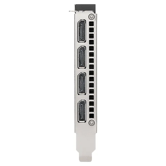 Admite hasta cuatro monitores 5K a 60 Hz o dos pantallas 8K a 60 Hz por tarjeta. El RTX A 4000 admite color HDR para 4K a 60 Hz para decodificación HEVC 10/12b y hasta 4K a 60 Hz para codificación HEVC 10b. Cada conector DisplayPort puede manejar resoluciones ultra altas de 4096 x 2160 a 120 Hz con color de 30 bits.