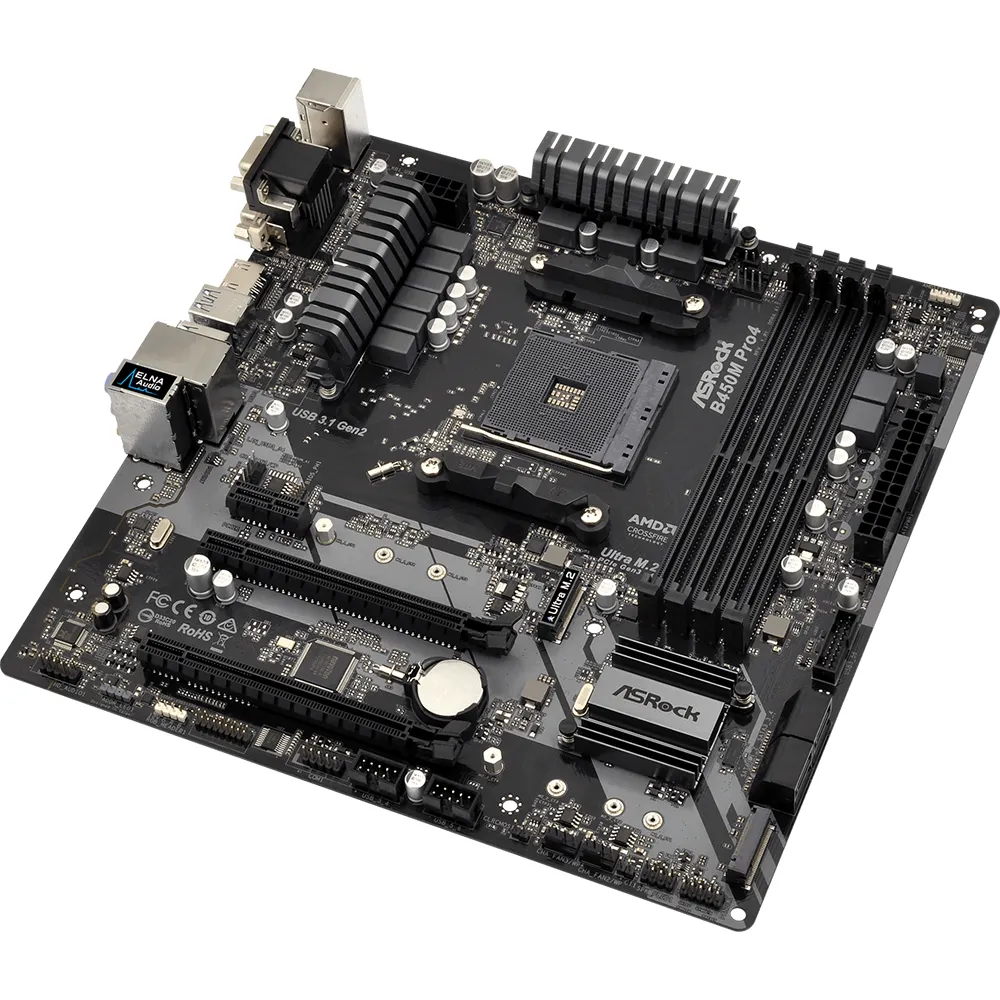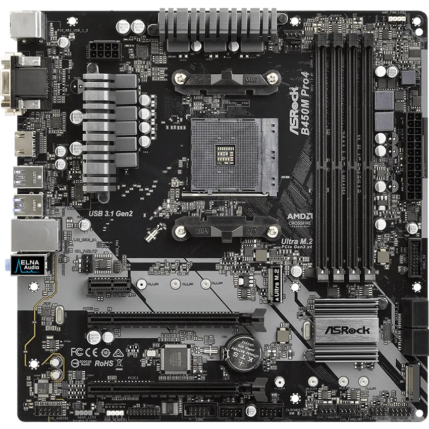ASRock B450M Pro4, Tarjeta Madre AMD Promontory B450, 4*DDR4, Audio 7.1, Gigabit LAN, PCI Express 3.0, SATA3, M.2, D-Sub, DVI-D, HDMI, USB 3.1, USB 3.1 Gen2 Type-C, Micro ATX.